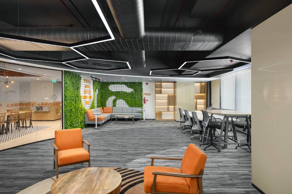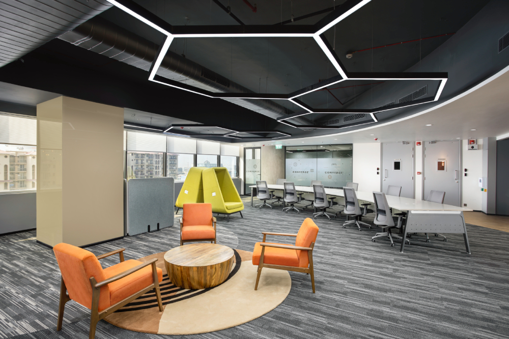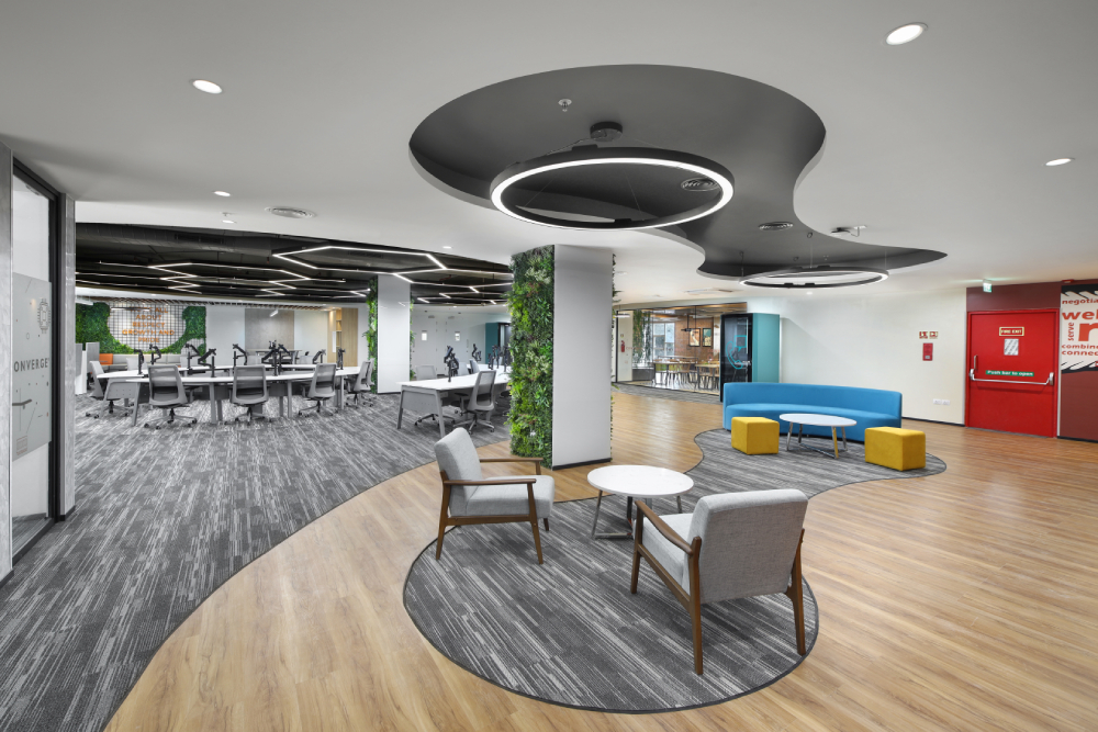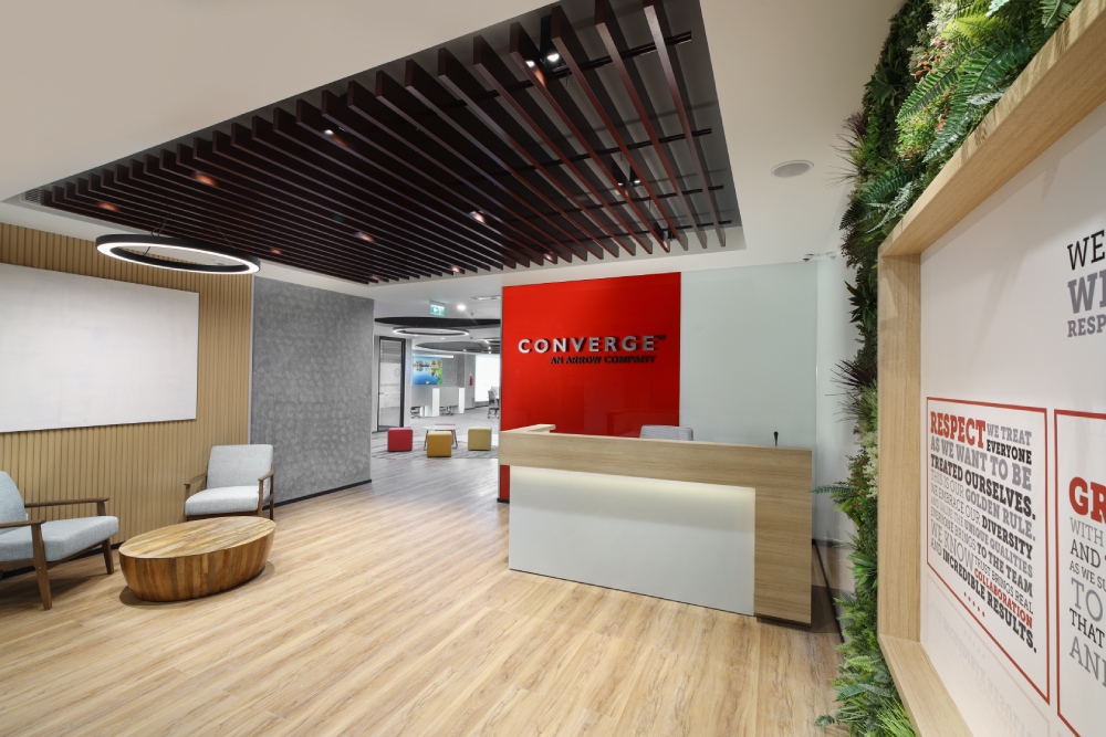 Converge is a subsidiary of Arrow Electronics, but they have a completely different style of functioning. This office was built on the concept of the Agile office and caters to different spaces for different activities with a healthy mix of formal, informal, collaborative and quiet spaces. The finishes were given in a way to create a colorful and vibrant ultra modern office while still retaining a formal appeal. These offices were built in Gurgaon and Bengaluru respectively.