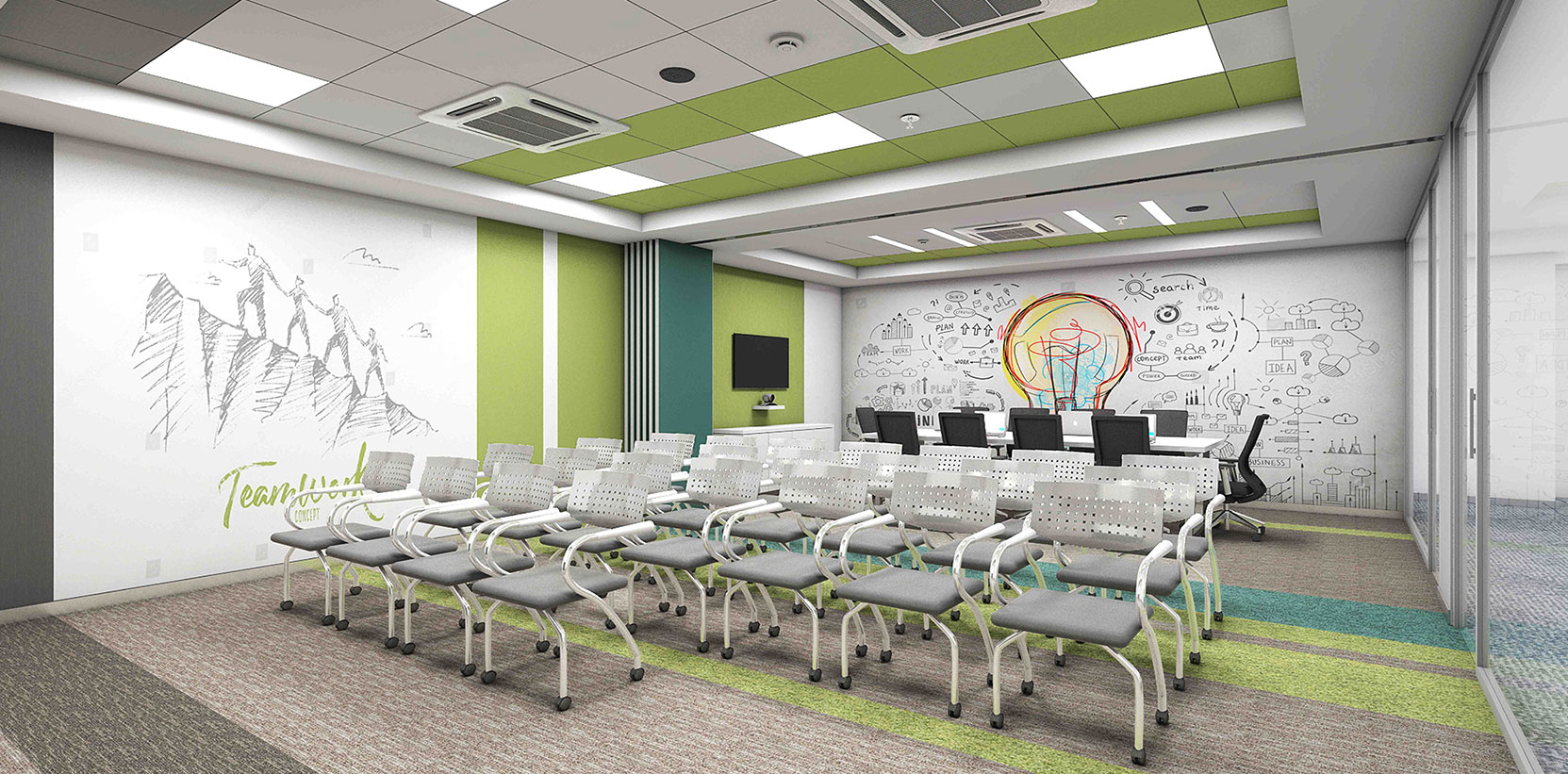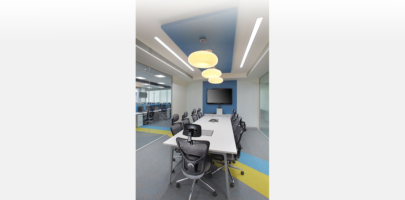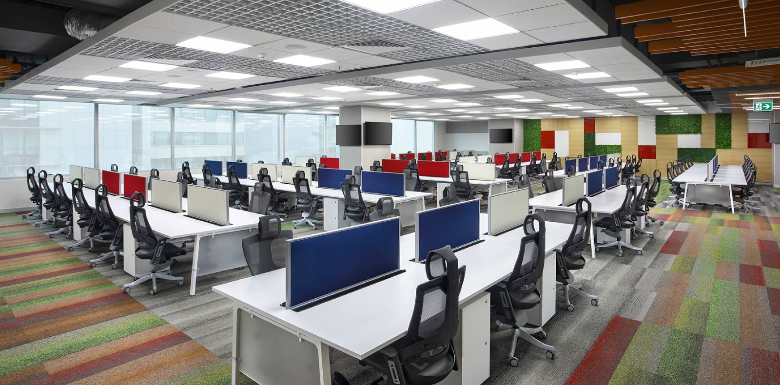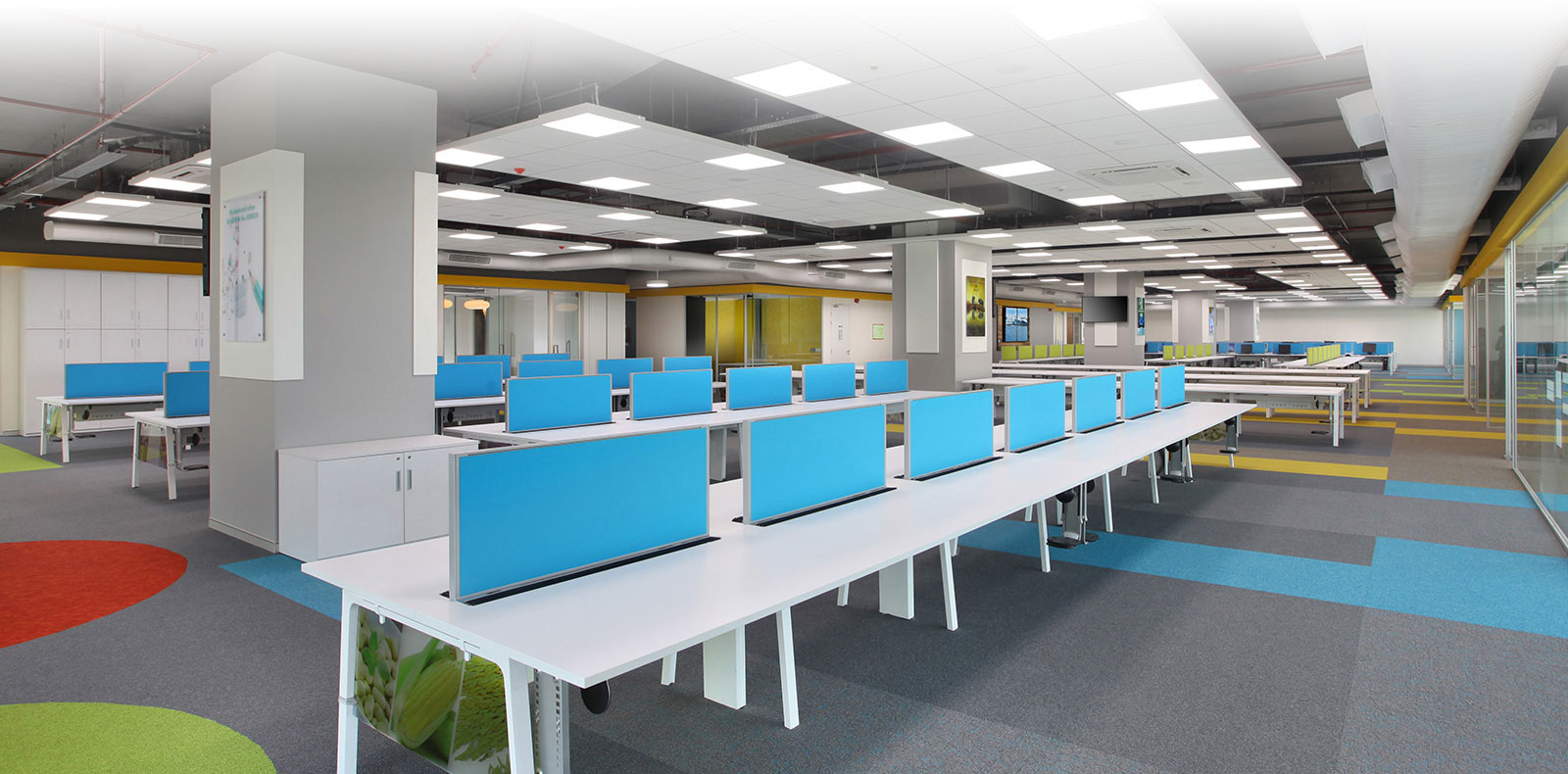 Futures First Info Services, is our client for over 10 years having done 12 projects in multiple locations including Delhi-NCR, Jaipur, Mumbai, Kolkata, Hyderabad & Bangalore. It is a London based firm, Trading in Commodities. The Corporate office is located on the Golf Course Road, Gurgaon in the premium DLF Horizon 2 building, with a carpet area of 16,000sft. The space has been designed as a modern and Premium office with chromatic colour scheme and given a fresh & youthful look. The concept was to create an energetic environment for the employees. Different materials were woven together as a whole to add texture and Visual appeal to the interior.